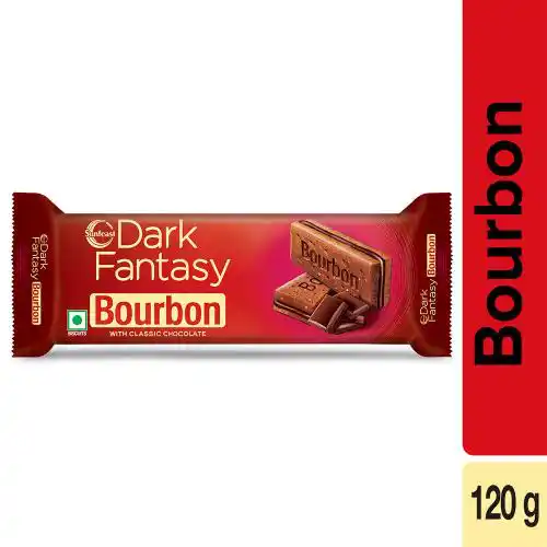 Enjoy the classic taste of Sunfeast Dark Fantasy Bourbon, a delicious chocolate cream biscuit loved by people of all ages.
